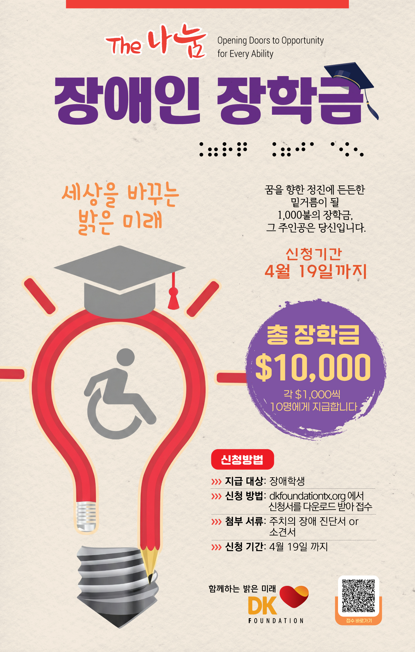 DK 파운데이션, 제4회 ‘더 나눔 장애인 장학금’ 신청 마감 임박