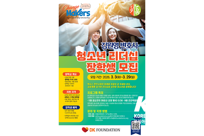 DK파운데이션은 “장학금은 단순한 재정 지원이 아니라, 차세대가 지역사회를 섬기며 리더로 성장하는 과정”이라며 “한인 청소년들의 많은 관심과 참여를 기대한다”고 전했다.